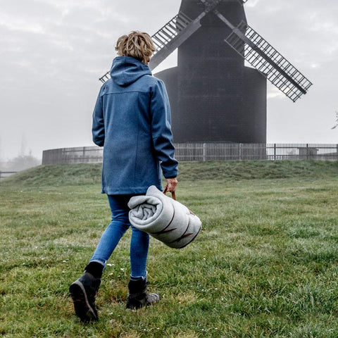 La manta de lana Petromax con una cinta de cuero, la aventura para llevar en cualquier sitio. La manta de lana Petromax viene con su cinta de cuero hecha a medida. Para transportarla, enrollar la manta, así ocupa poco espacio y se fija con sus dos cinchas ajustables. Tenéis la aventura a mano gracias a su asa de transporte.