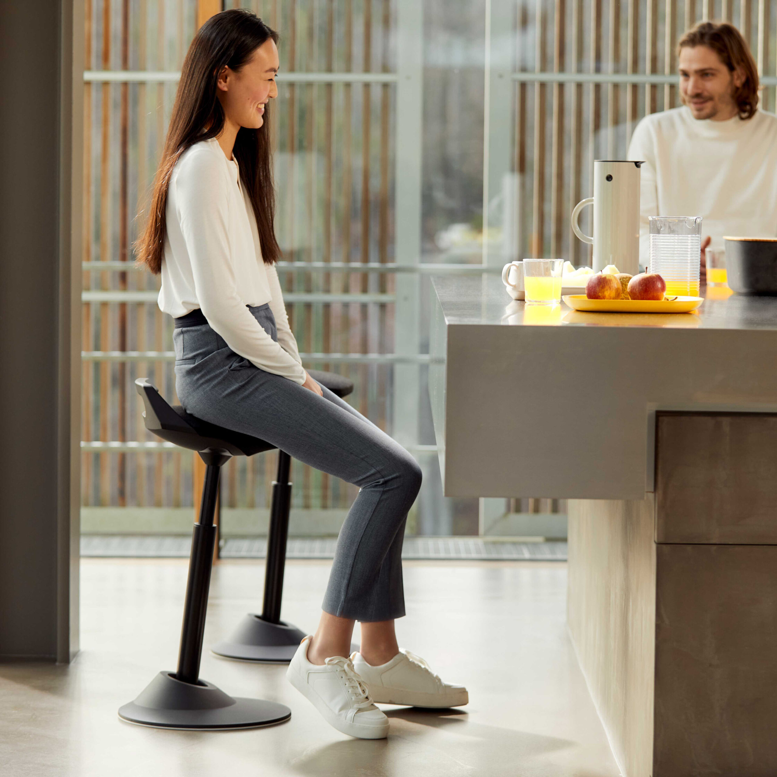 Gracias a su ergonomía y tecnología alemana innovadora esta silla nos permite estar sentado o de pie, introduciendo el movimiento en el espacia de trabajo de manera activa y dinámica . Diseñada para adaptarse de manera óptima a cualquier superficie de trabajo, ajustable en altura, trabaja eficientemente contra los perjuicios de permanecer sentados o de pie durante largos periodos de tiempo, fomentando los cambios de postura, tanto cuando se está sentado como cuando se está de pie.