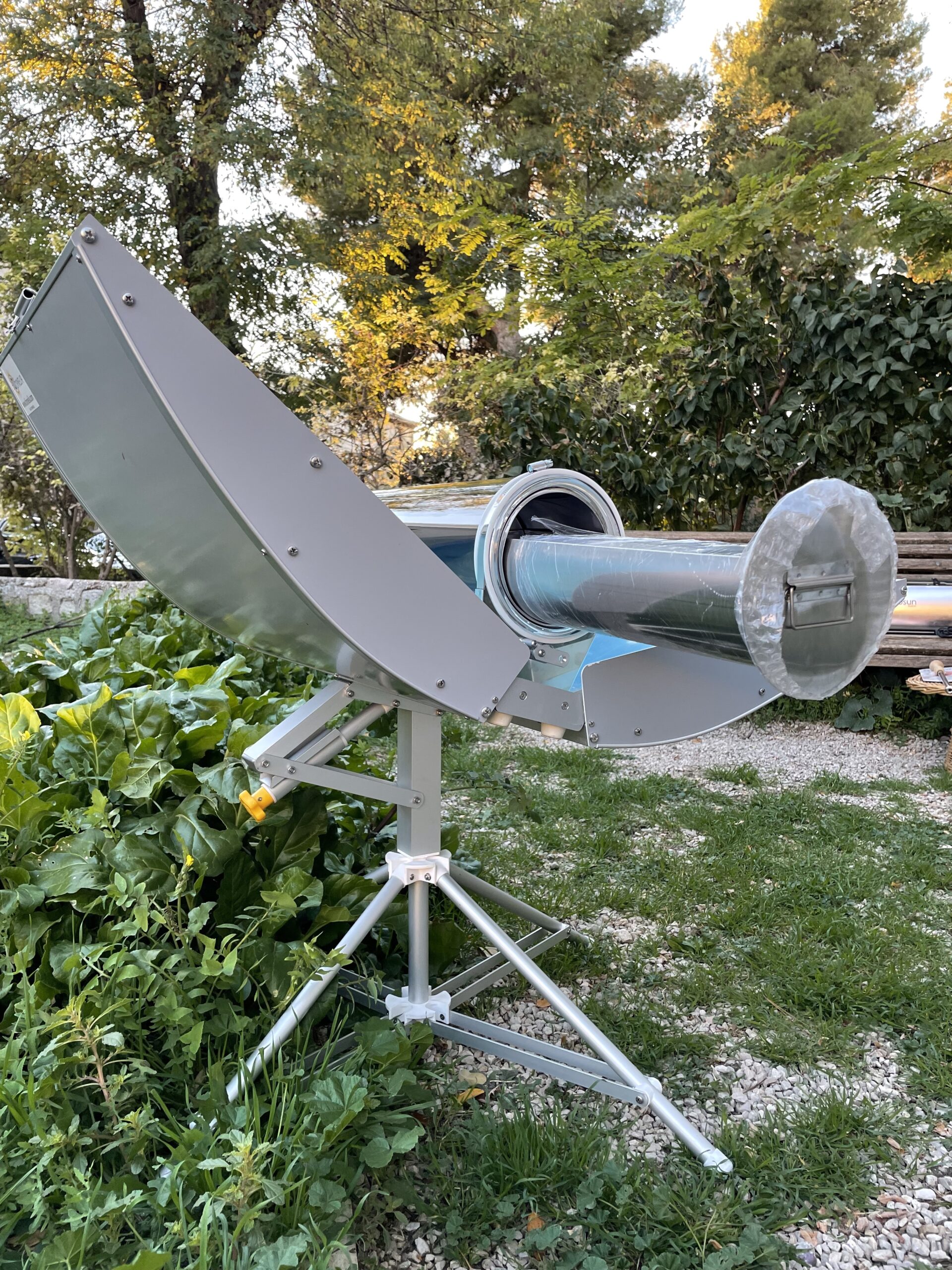 La barbacoa solar SUNCHEF utiliza el principio de la tecnología solar concentrada. Gracias a sus dos alas parabólicas, toda la energía del sol se concentra en el interior del tubo de vacío en el que se cocinarán sus alimentos.