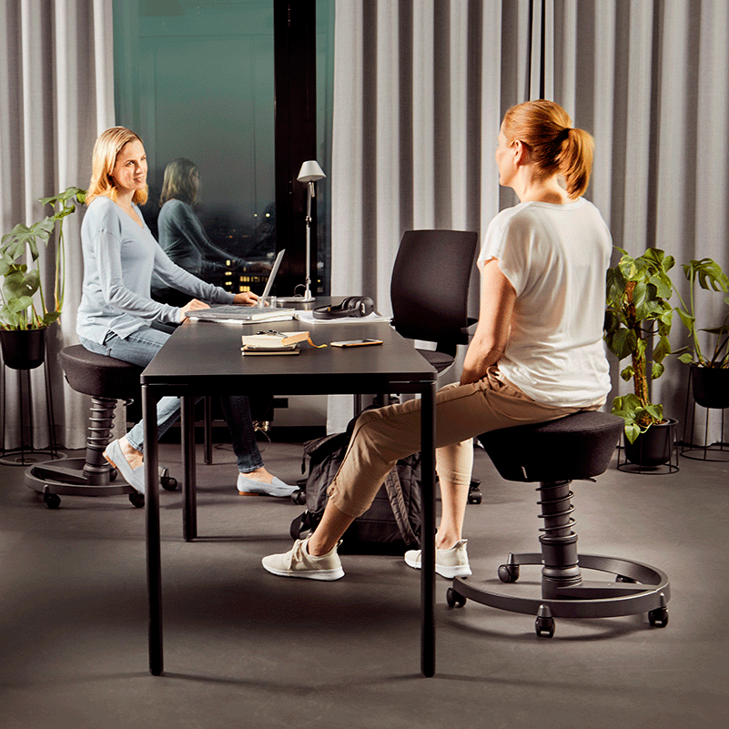 La tecnología 3D patentada promueve con el asiento activo 3D sentarse sano y en movimiento, cambiando de posición más frecuentemente que en una silla de oficina normal. La swopper entrena y refuerza tu musculatura mientras te sientas, y su muelle protege los discos de tu columna.